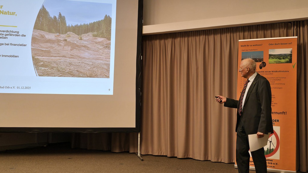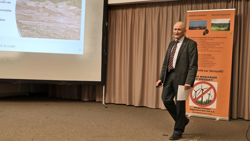 Am 01.Dezember 25 füllte sich der Gartensaal erneut bei der Informationsveranstaltung des Vereins Gegenwind Bad Orb e. V. Ziel war es, Chancen durch den geplanten Kur- und Heilwald am Horstberg sowie Risiken von Windkraftanlagen darzustellen.
