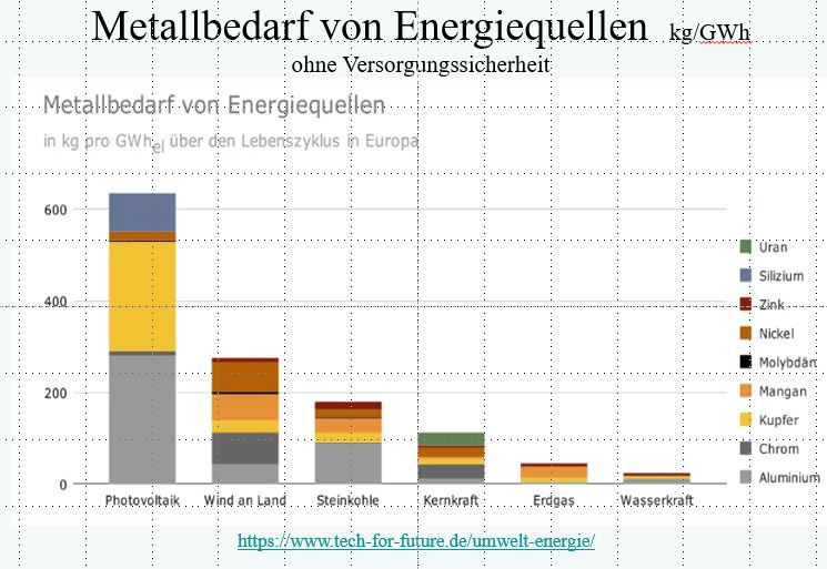 Metallbedarf bezogen auf die erzeugte Energiemenge Kg / GWh = Tonnen / TWh